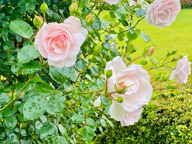 でも、立ち寄った新宿御苑の整形式庭園のしずく付きのバラがとても見事で美しかったです!